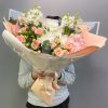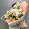 Сборный букет с хризантемой, кустовой розой и маттиоллой