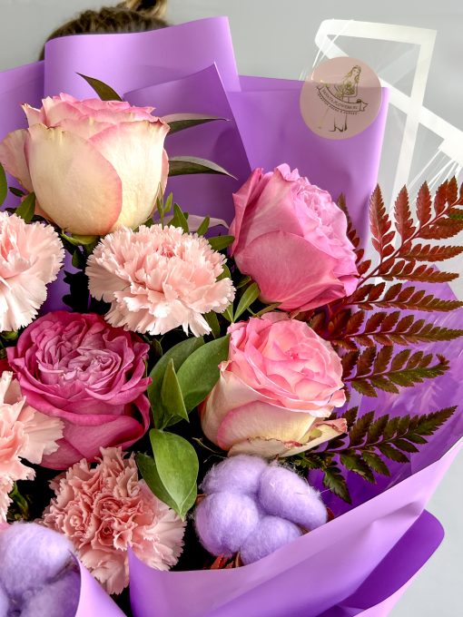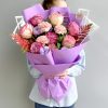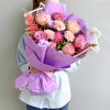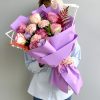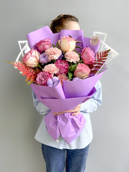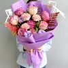 Сборный букет с пионовидной розой, диантусами и зеленью