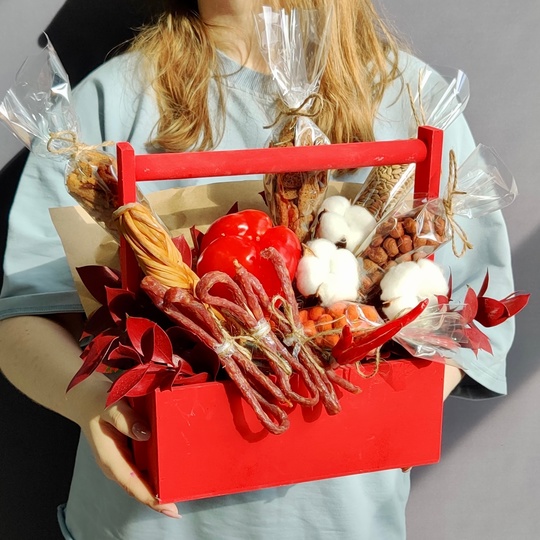 Композиция в деревянном лотке с вкусными мясными и сырными изделиями, орехами, снеками, перцем в стильной оранжировке. Дополнительно упаковано в целлофан. 🌷 Экспресс-доставка 🌷 Кешбэк от суммы заказа 🌷 Открытка в подарок 🌷 Фотоотчет перед отправкой