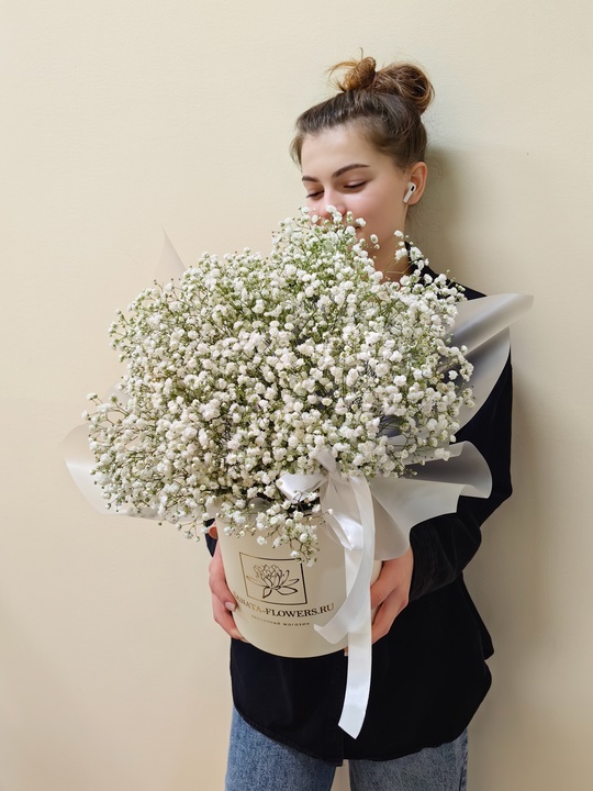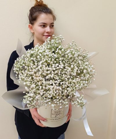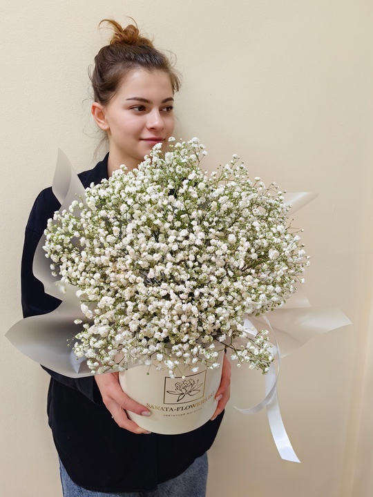 Шляпная коробка с гипсофилой🤍